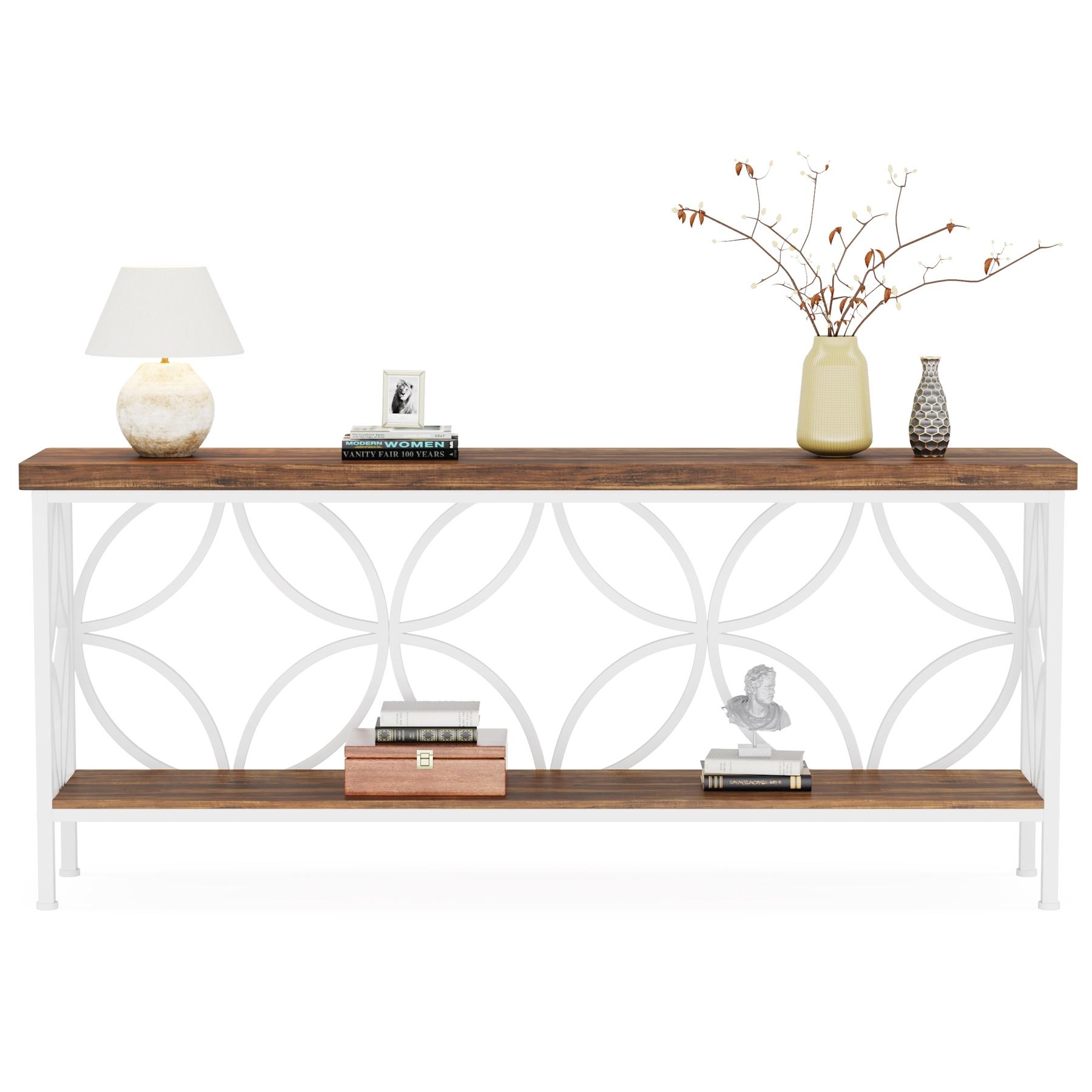 - Fnova 70.9" Industrial Console Table, 2-Tier Wood Storage Narrow Sofa Table, Behind Couch with Metal Frame, for Living Room, Entryway, Foyer, Easy Assembly