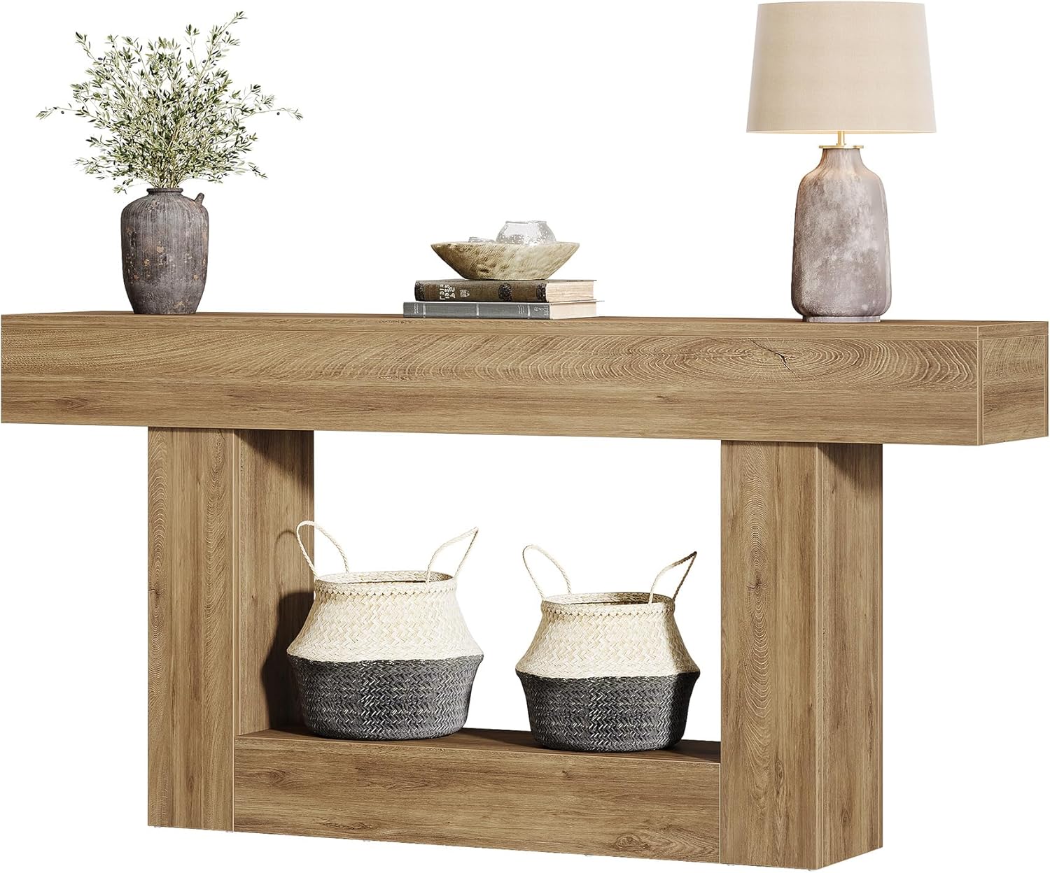 Fnova 63" Farmhouse Console Table, 2-Tier Wood Entryway/Sofa Table with Storage Shelf for Living Room, Hallway, Behind Couch