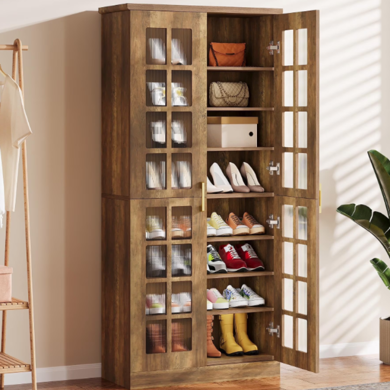 - Fnova 70.8" Tall Shoe Cabinet for 32 Pairs, 8-Tier Shoe Storage with Adjustable Shelves, Wooden Shoe Rack Organizer for Entryway, Hallway, Closet, Living Room, Brown