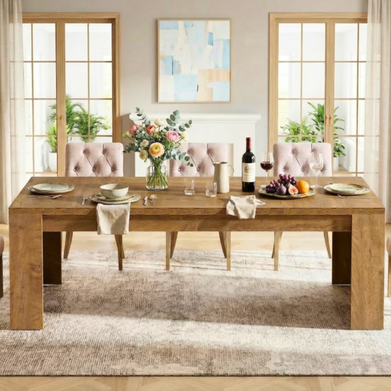 This Fnova 70.87" dining table offers a spacious tabletop ideal for dinner parties and family gatherings, comfortably seating multiple people. Featuring a warm natural wood finish, it brings minimalist farmhouse charm to any space. Supported by solid wooden legs and hidden metal reinforcements for enhanced stability, it’s built to last. Versatile as a dining table, desk, or conference table, with simple assembly. A stylish, sturdy, and multi-functional centerpiece for your home!
