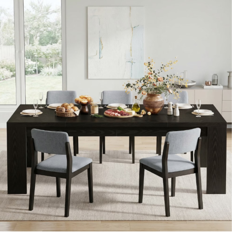 - Fnova 70.9" Large Rectangular Wooden Dining Table for 6-8 People, Sturdy Kitchen Dinner Table for Dining Room, Black