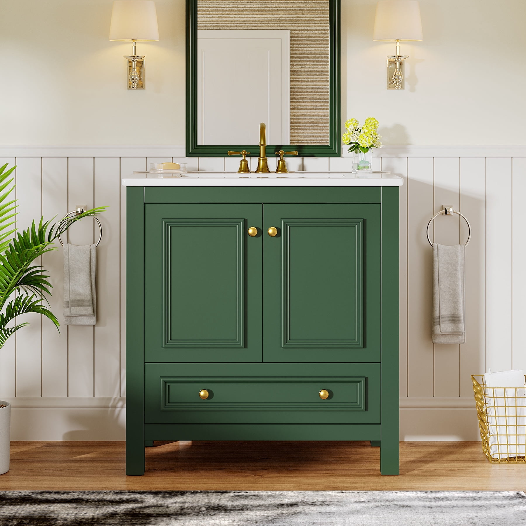 - Fnova 30" Modern Bathroom Vanity with Sink, Freestanding Bathroom Vanities Cabinet, Bathroom Sink Cabinet with 2 Doors and 1 Drawer, Solid Wooden Frame