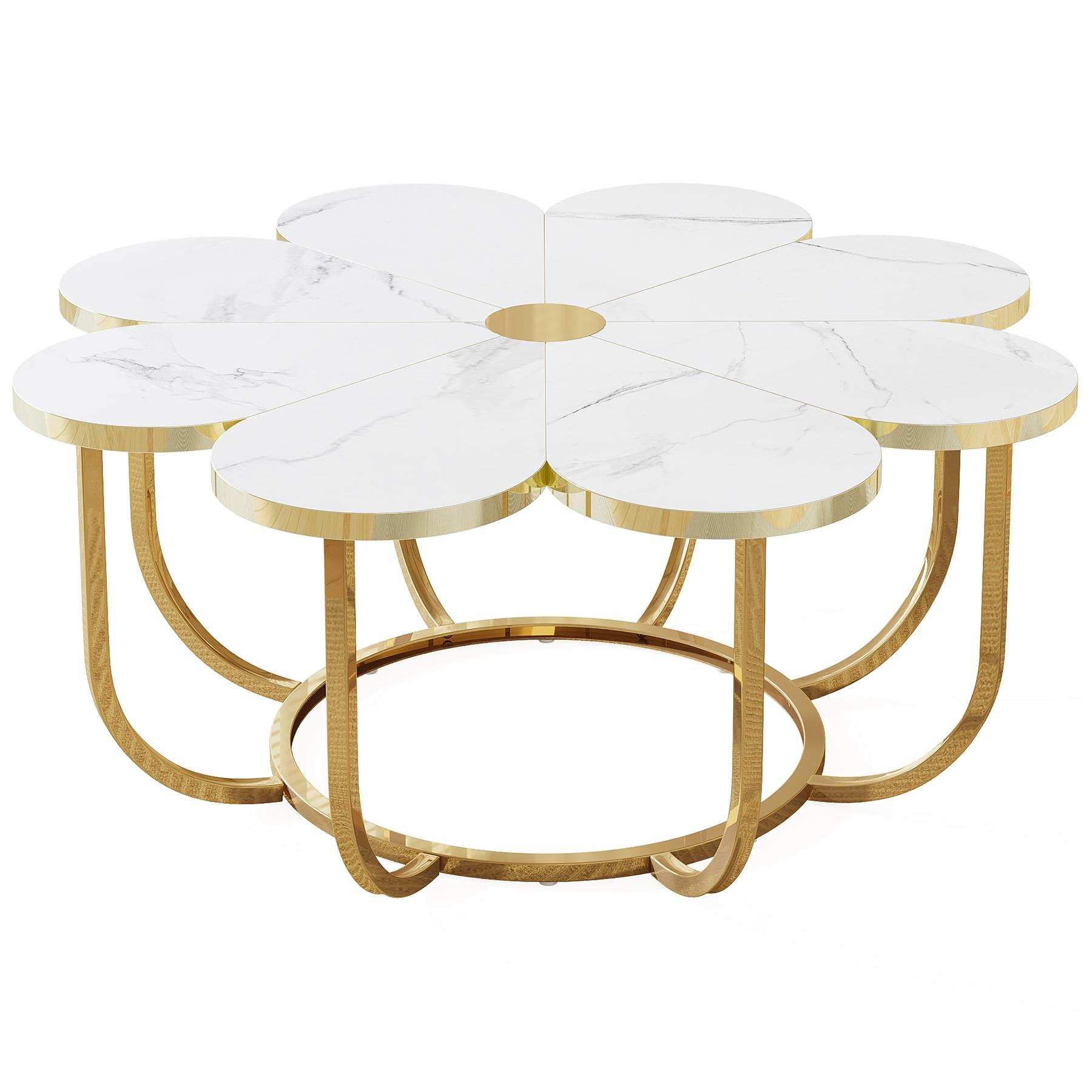 - Fnova 39.37" Flower-Shaped Coffee Table, Modern Floral Accent Center Table with Faux Marble Tabletop & Metal Frame for Living Room, Bedroom & Lounge