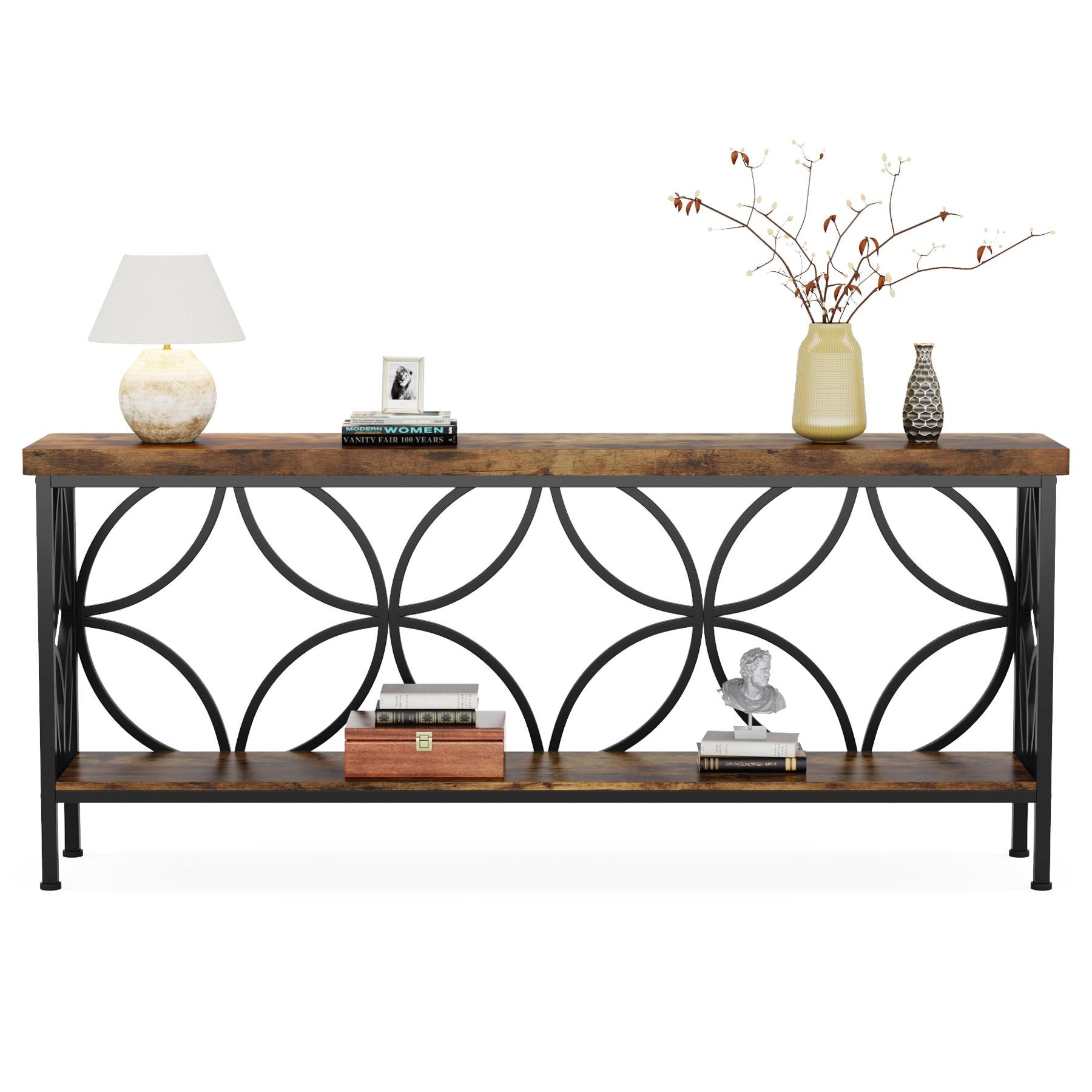 - Fnova 70.9" Industrial Console Table, 2-Tier Wood Storage Narrow Sofa Table, Behind Couch with Metal Frame, for Living Room, Entryway, Foyer, Easy Assembly