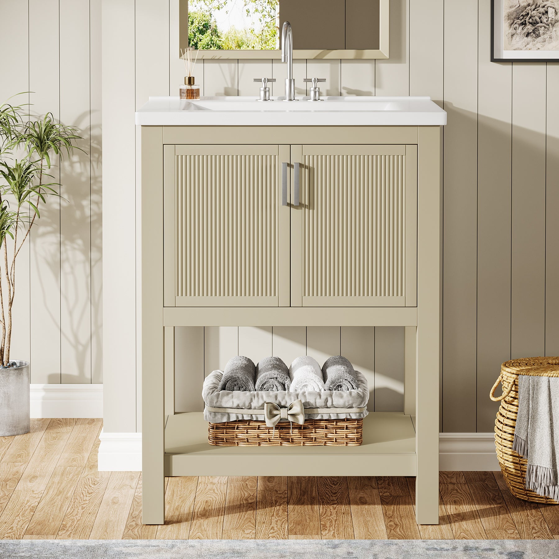Fnova 24" Bathroom Vanity with Sink, Modern Bathroom Sink Cabinet with Ceramic Basin for Small Space, Freestanding Storage Cabinet with 2 Doors & 1 Open Shelf