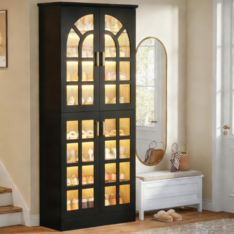 - Fnova 69"Tall Shoe Cabinet with Doors and LED Lights for 16-34 Pairs, 8-Tier Shoe Organizer with Adjustable Shelves, Modern Shoe Rack for Entryway, Hallway, Closet, Living Room, Black