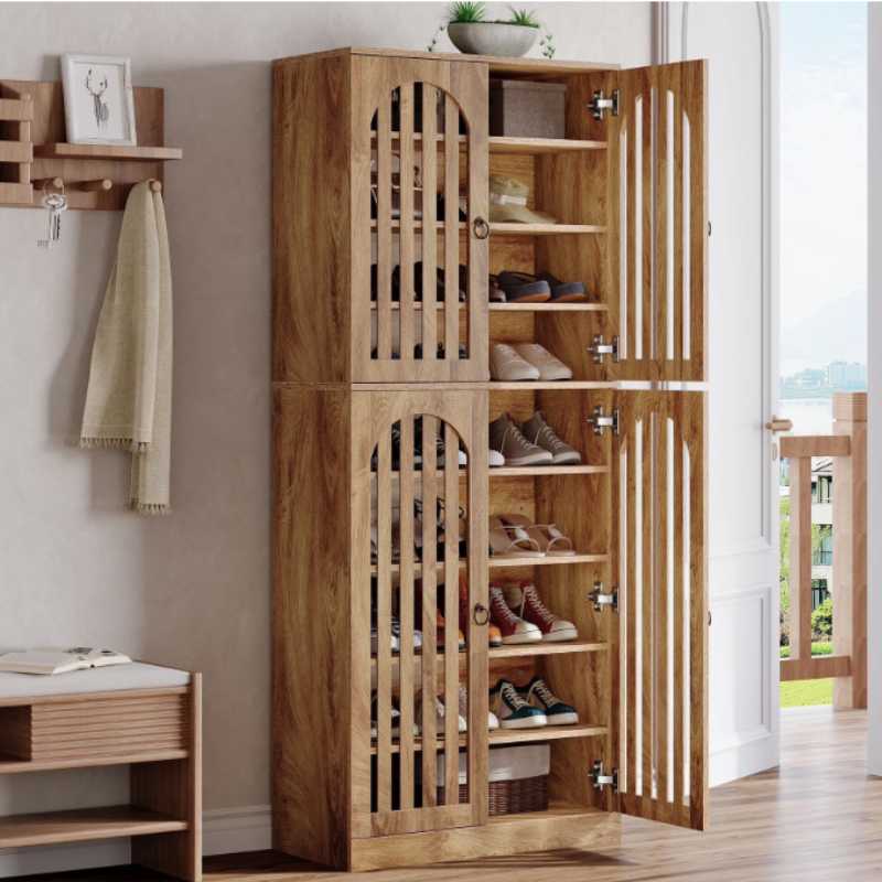 - Fnova 70.86" Tall Shoe Storage Cabinet for 27-36 Pairs, 9-Tier Farmhouse Shoe Organizer Rack with Doors for Entryway Hallway Living Room, Closet, Brown