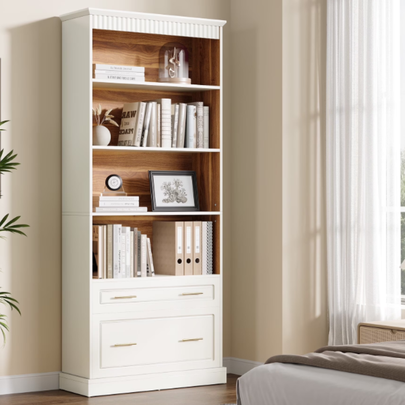 - Fnova 72" Tall Bookcases with File Cabinet Drawer, Freestanding Display Storage Shelves, 5-Shelf Open Bookshelf for Home Office Living Room Bedroom, White