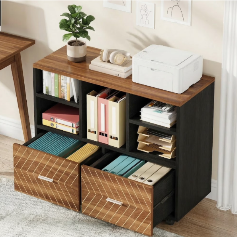 - Fnova 39.4" Mobile Lateral Filing Cabinet with 2 Drawers for Hanging Letter Size Files, Printer Stand with Open Storage Shelves for Home Office, Black+Brown