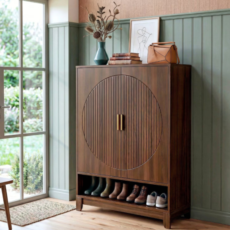 This Fnova 6-tier shoe cabinet stores up to 24 pairs with adjustable shelves for tall boots and quick-access bottom space. Made of scratch-resistant engineered wood with anti-tip safety hardware. Its mid-century modern design hides shoes dust-free behind smooth-hinge doors. Easy to assemble with labeled parts—turn cluttered entryways into tidy, stylish spaces fast!