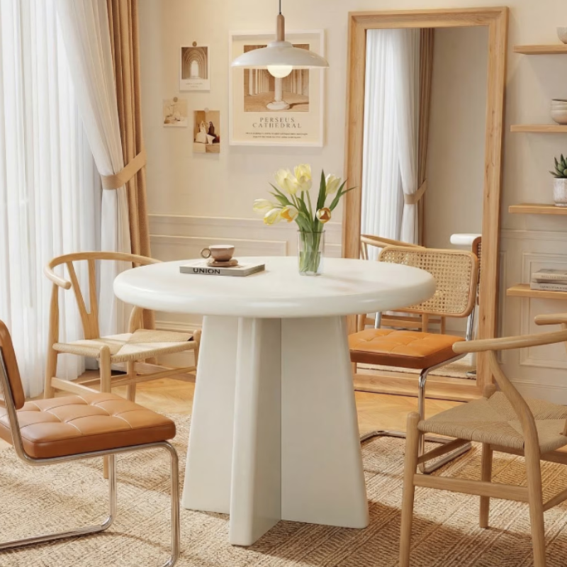 This Fnova 31.5" round white dining table seats 2–4 people, boasting a minimalist modern design with a smooth top and crossed legs. Built with a thick 1.97" MDF top for sturdiness, scratch resistance, and easy maintenance. Versatile for dining, coffee, or work. Simple assembly with all tools included. An elegant, space-saving centerpiece that elevates any contemporary home!