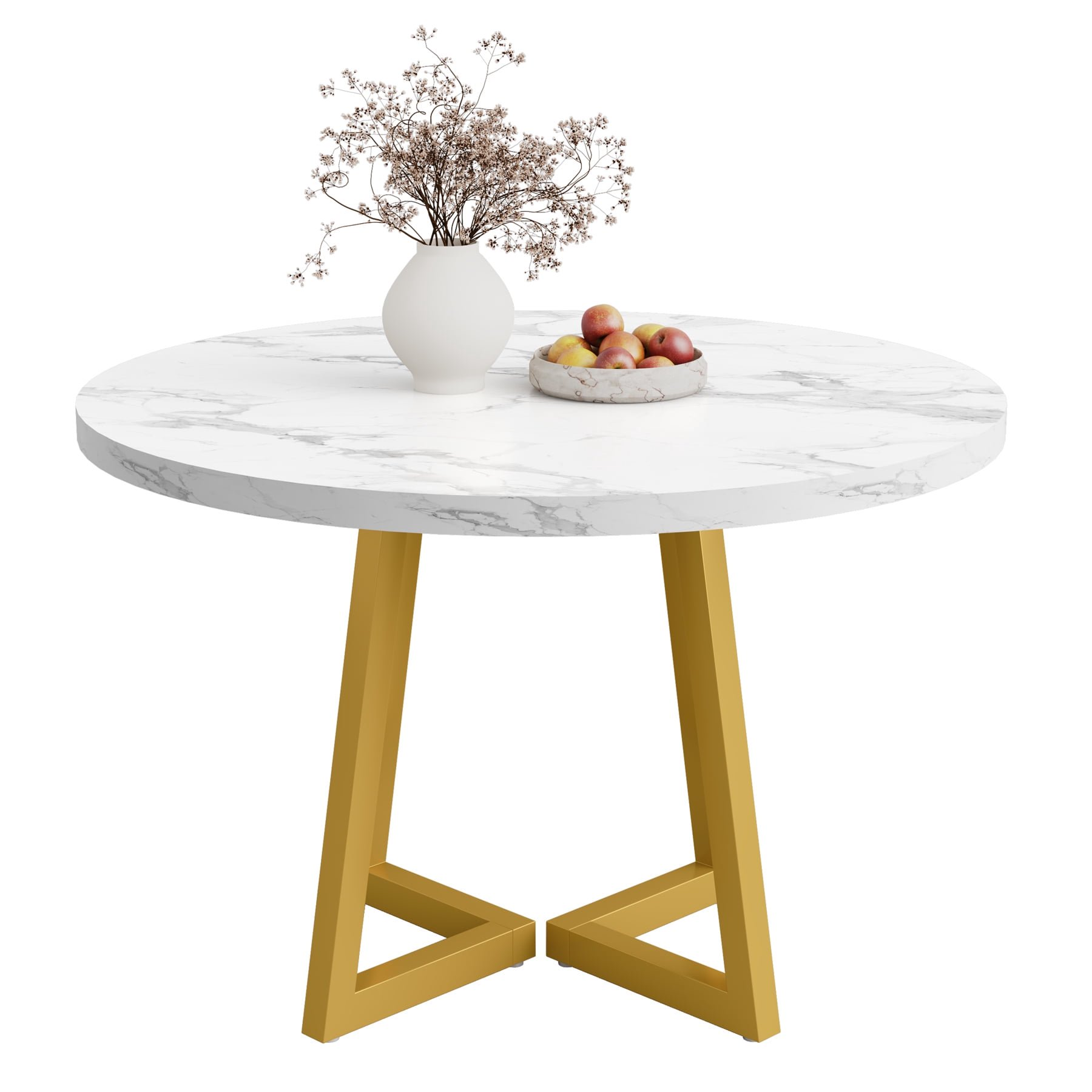 - nova Round Dining Table for 4 People, Modern Kitchen Table with Sturdy Metal Frame, Small Space Circular Dinner Table for Living Room, Apartment, and Breakfast Nook