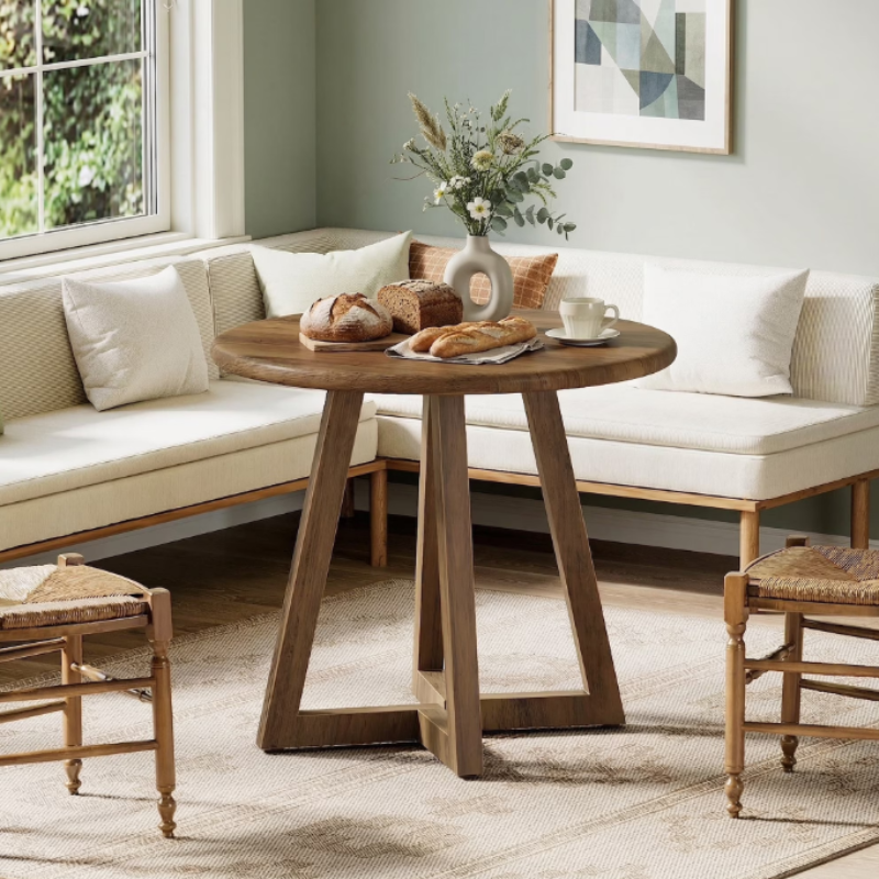 - Fnova 31.5" Small Round Dining Table for 2-4 People, Wooden Kitchen Table for Dining Room, Living Room, Brown
