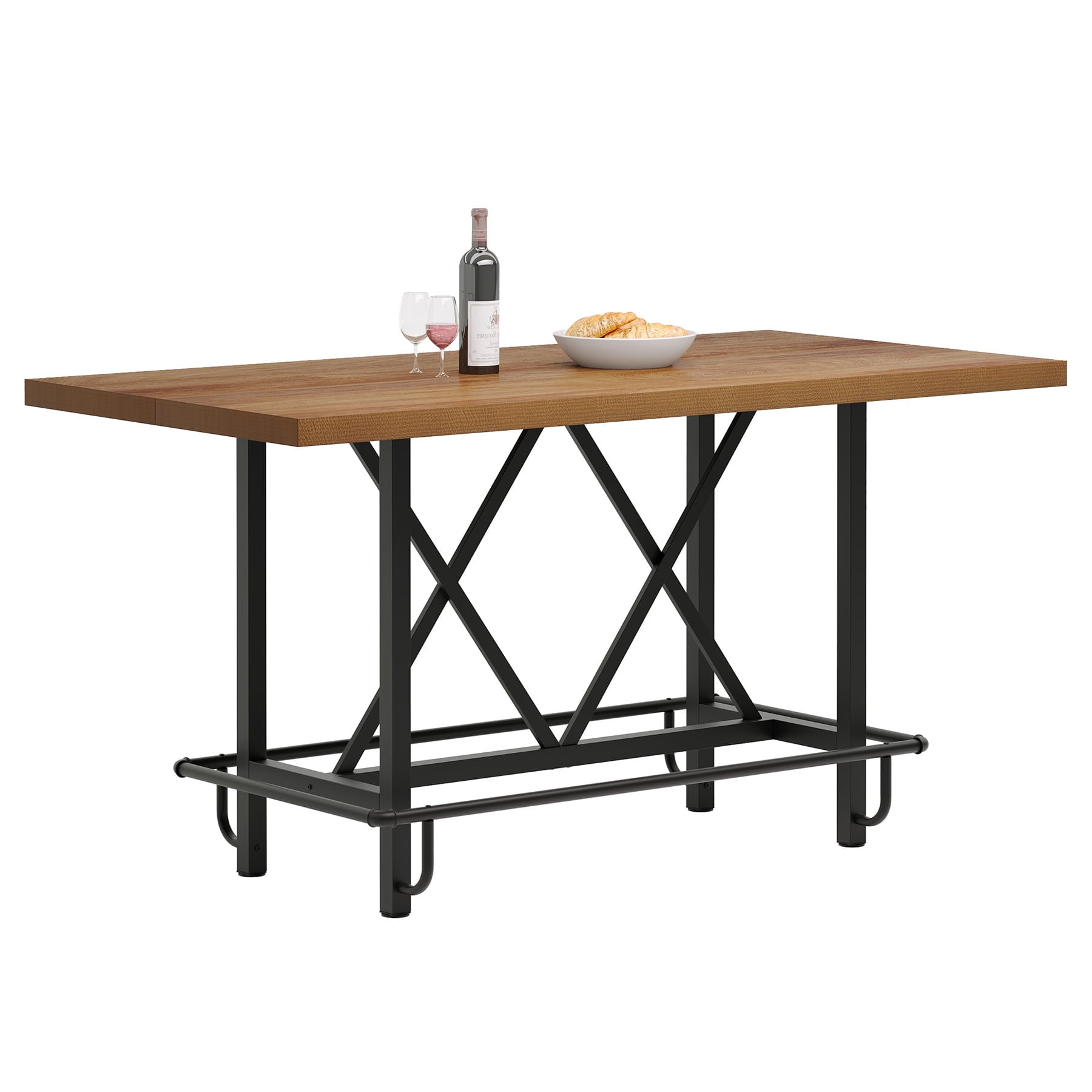 - Fnova 35.4" Tall Dining Table, Rectangular Counter Height Kitchen Table with Metal Footrest for 6 People